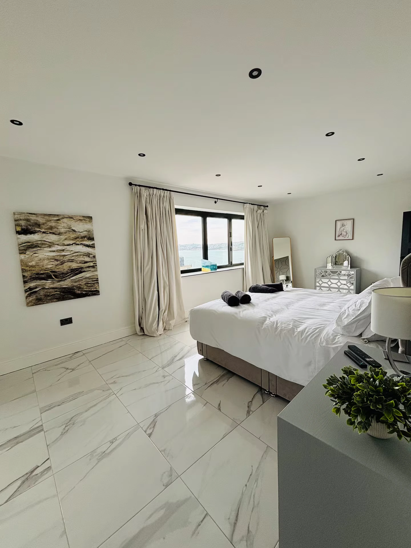 Blue Hayes is a beautifully restored 1920s Art Deco coastal home created for relaxed stays with family and friends. The house blends period character with high-end contemporary comfort, with big social spaces, calm bedrooms, and sea views across Torbay.