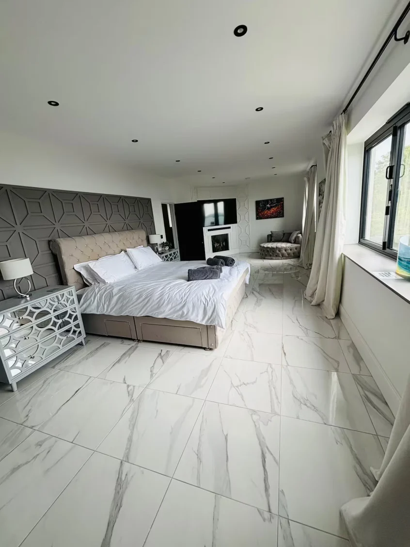 Upstairs, three generous bedrooms sit on the first floor, while the entire top floor is dedicated to a standout master suite: panoramic views, a freestanding bath, and spa-style steam and sauna features that turn a normal break into a proper retreat.