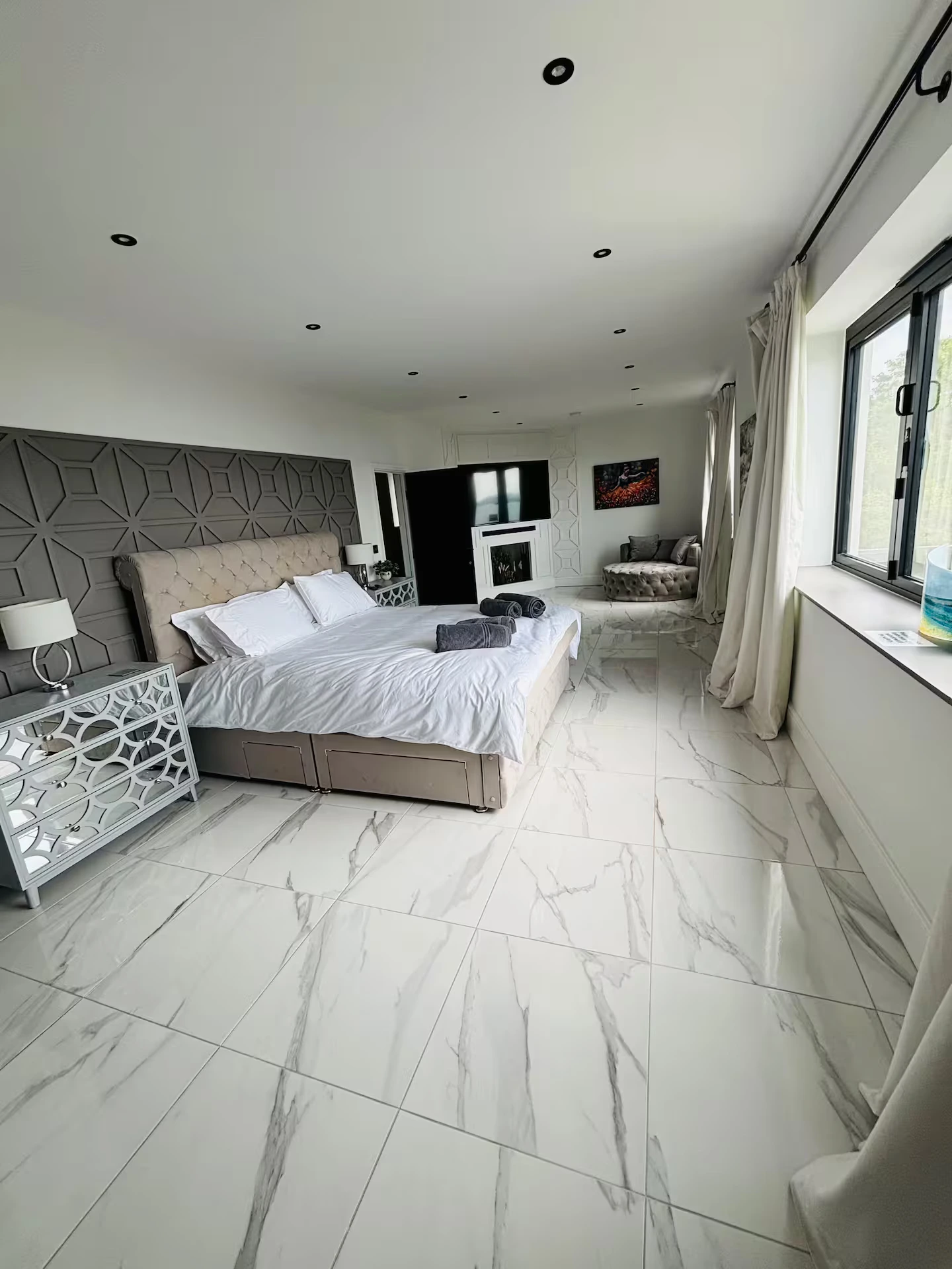 - Comfortable lounge setup for film nights and slower evenings in